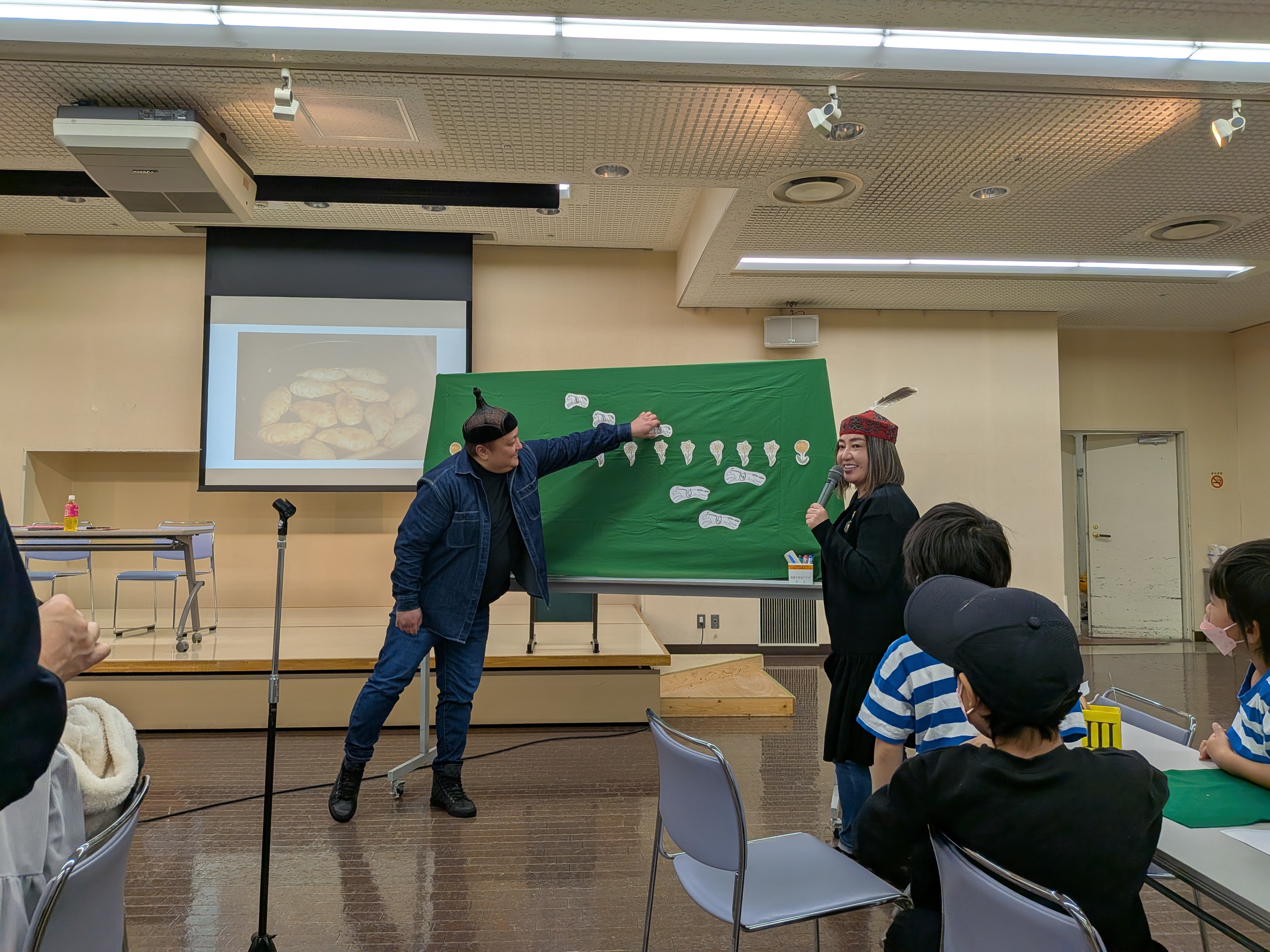 12月13日に市民プラザホールで行いました。参加者は、小学生20名でした。講師に、バーサンスレン・ボロルマーさんとイチンノロブ・ガンバートルさんをお呼びし、絵本の読み聞かせや二人のお話、モンゴルのすごろくを行いました。