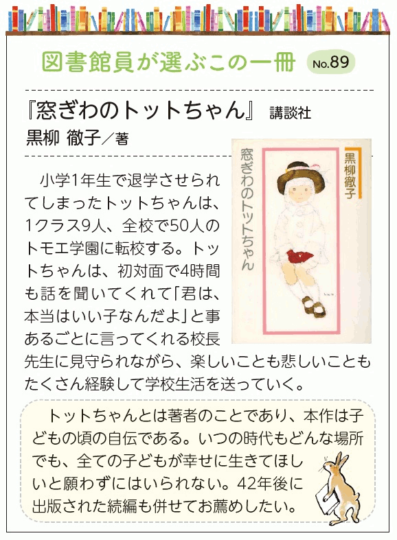 第1位(6票) 『窓ぎわのトットちゃん』黒柳 徹子/著 講談社 (NO.89)